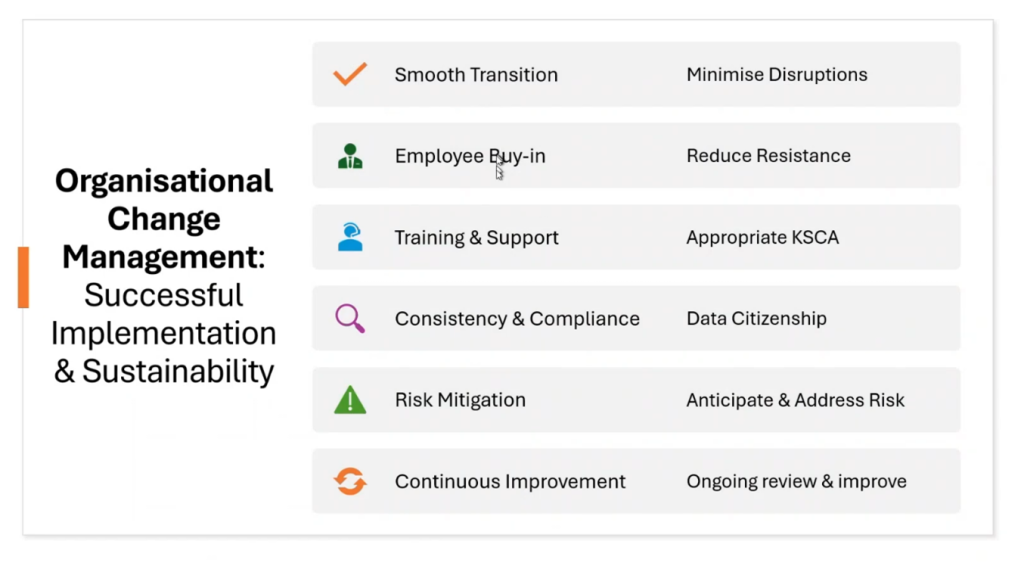 When assessing readiness for Data Governance, consider factors such as maturity, culture, and the level of change within the organisation. Conduct a DMMA (Data Management Maturity Assessment) to evaluate the state of governance, quality, data integration, data modelling, and Metadata. Prioritise governance, risk understanding, employee engagement, collaboration, and accountability to drive data ownership and Key Performance Indicators (KPIs)-driven changes. Change management is crucial in facilitating the transition and addressing organisational concerns.